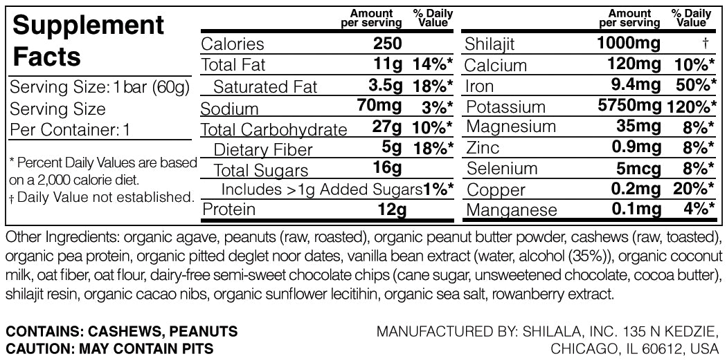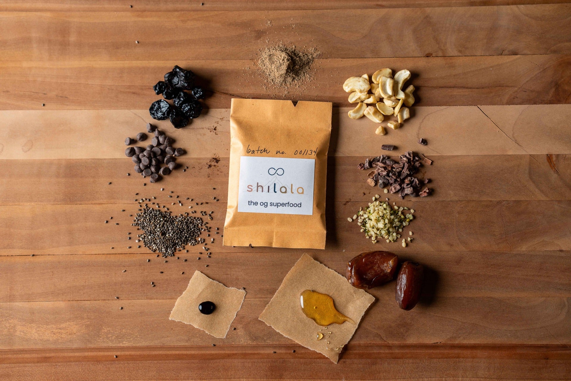 Shilajit resin. We engineered the Shilala bar to remove the notoriously bitter, metallic taste by blending the raw